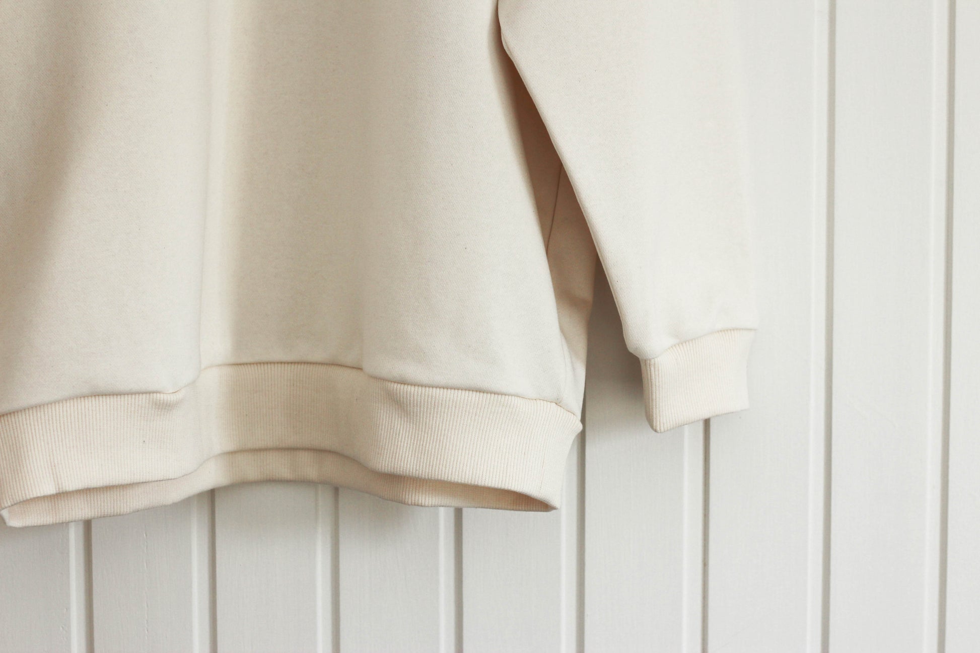 100% 350gsm cotton french terry, raw un-dyed/untreated fabric which softens with each wash and wear cycle, gradually becoming uniquely yours.