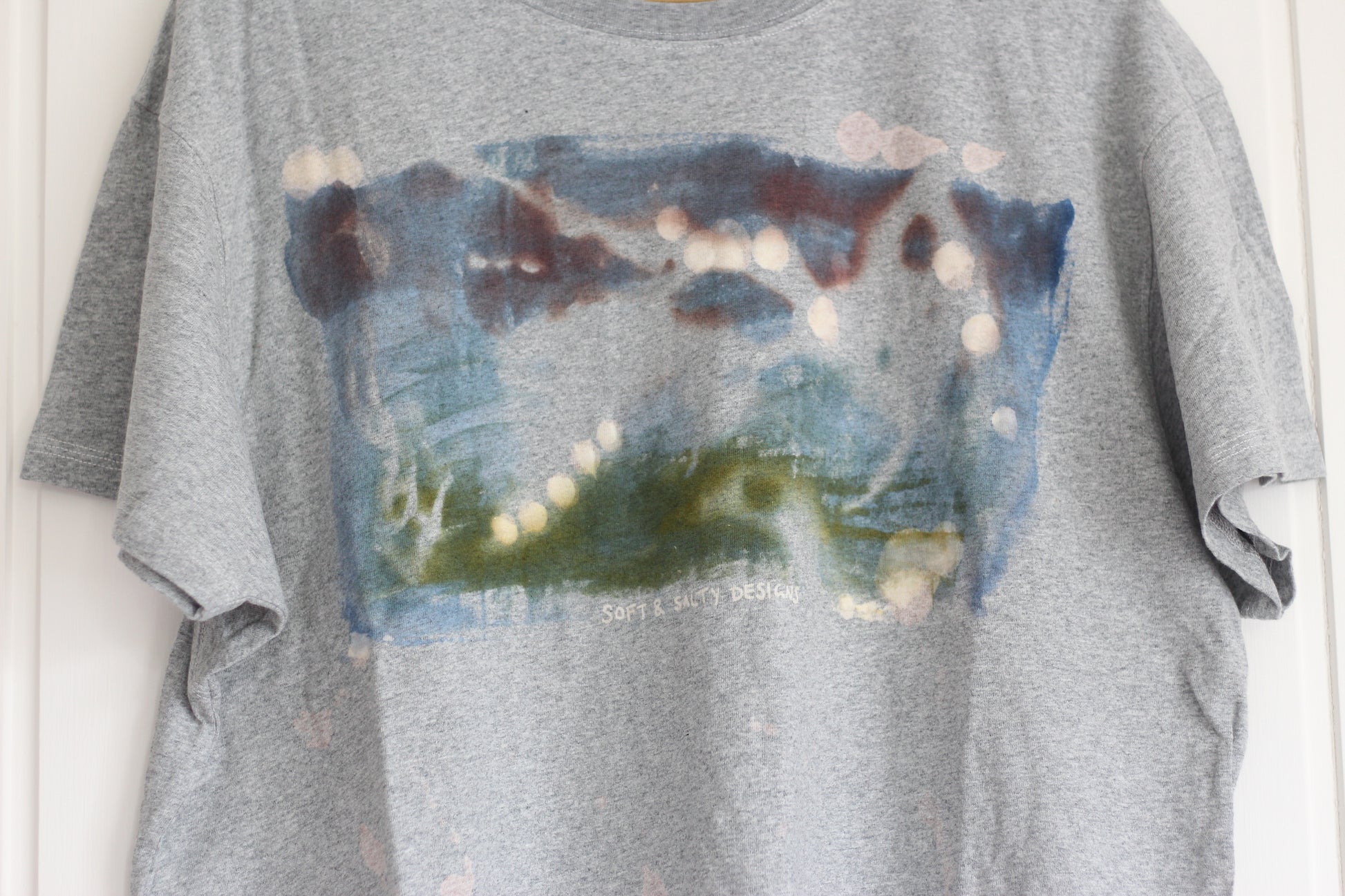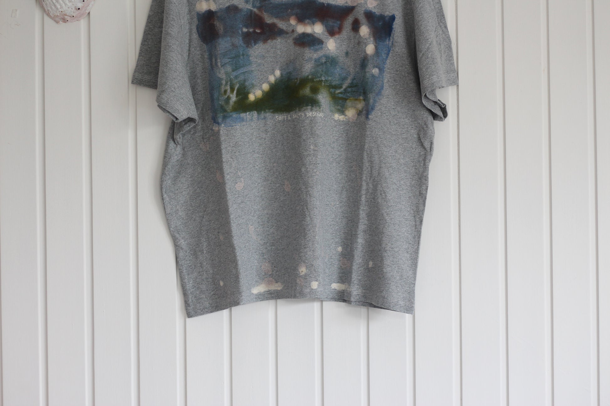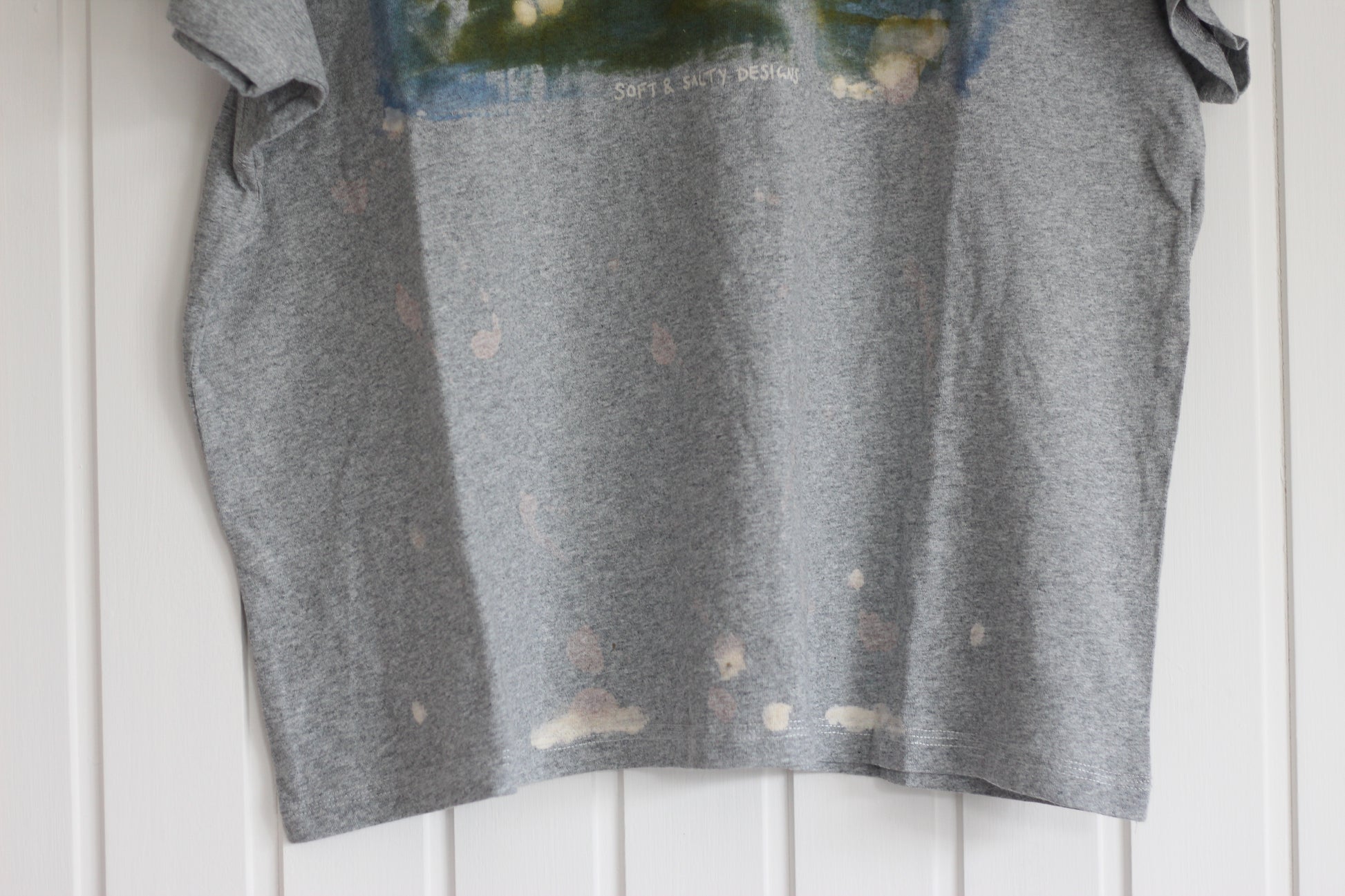- Accidentally got some dye stains on the bottom front of the shirt which I have tried to cover up with decolourant paste, but it just ended in a bit of a mess. Still a very cool print though!